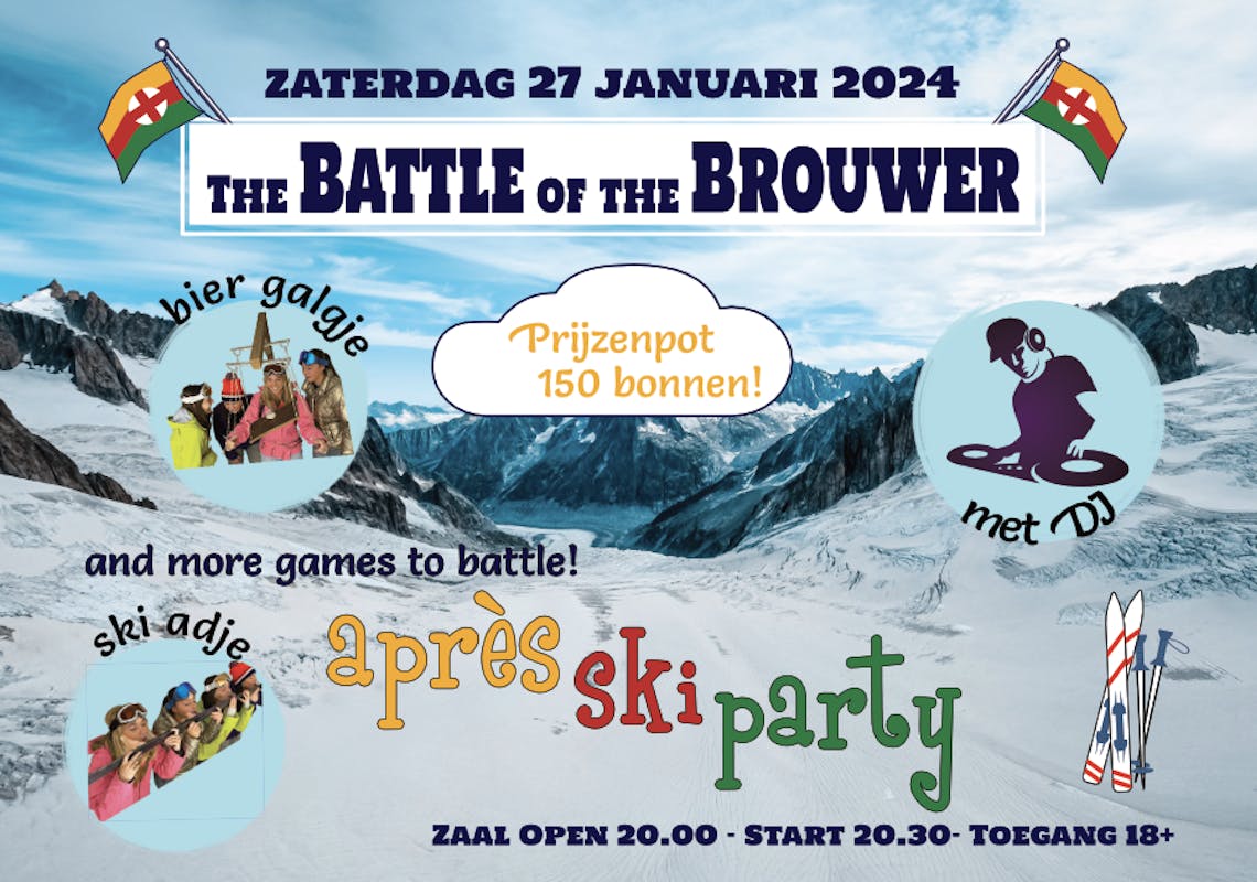 Op zaterdag 27 januari daagt café De Brouwer met medewerking van C.V. De Pierewaaiers jou en jullie uit om het beste uit jezelf te halen! The Battle of the Brouwer is een compleet nieuw format om het gat op te vullen dat het legendarische Pieregeblèr helaas achterlaat. Een feestavond, waar tegelijkertijd een harde strijd geleverd moet en zal worden! De battles zijn een mix van behendigheid, strategie en een hoop lol. Je kunt café De Brouwer de 27e vanaf 20.00u binnenlopen en spontaan besluiten in kleine groepjes tot maximaal 4 personen deel te nemen. De battles zullen tot ongeveer 23.00u duren, waarna de feestavond met DJ losbarst.