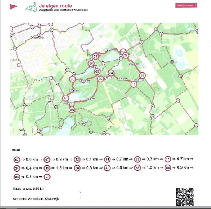 Startpunt is knooppunt 67 aan de Vennelaan in Oisterwijk (Taxandria Atletiek). Vertrek om 9 uur.