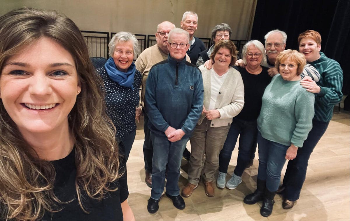 Foto: Toneelgroep ’De Tweede Jeugd’ met helemaal links gastspeler Nicole van Daelen.