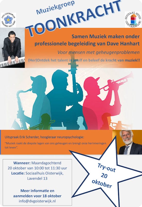 Samen Muziek maken onder professionele begeleiding van Dave Hanhart, voor mensen met geheugenproblemen.