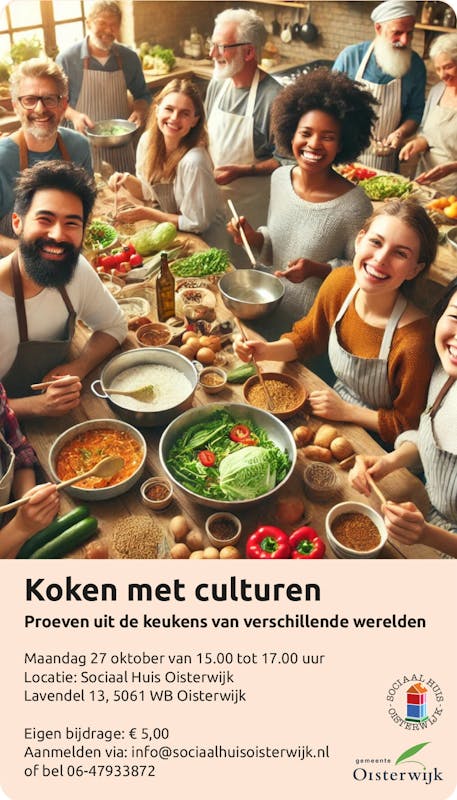 Op maandag 27 oktober van 15.00 tot 17.00 uur gaan we weer koken met culturen.