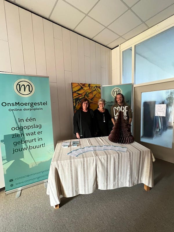 Voor de buurtverbinders van www.onsmoergestel.nl een goede reden om aan te sluiten. In de hal van het klooster met onze funkelhagelnieuwe banners en flyers informeerden we zoveel mogelijk bezoekers over de site. Behoorlijk wat mensen hadden al eens van ons gehoord en werden verder op weg geholpen. We hopen dat velen zich aanmelden op de site zodat we met elkaar een mooi online Dorpsplein kunnen gaan vormen. Heb jij je al aangemeld? DOEN!