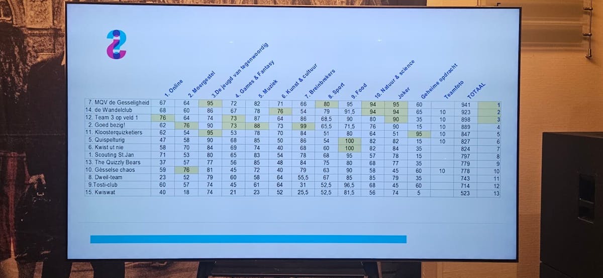 Afgelopen zaterdag hield de pastoor de grote onthulling. De spanning was om te snijden tijdens de gezellige avond in den Boogaard. We eindigden trots op de zesde plek, tussen maar liefst 13 teams. Niet slecht, toch?