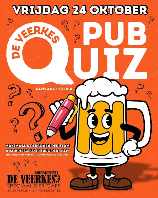 Doe mee met onze pubquiz! Versla de andere teams onder het genot van een drankje. Een gezellige avond met grappige filmpjes en komische vragen over het laatste nieuws, sport, muziek, showbizz en meer. Maximaal 6 personen per team.