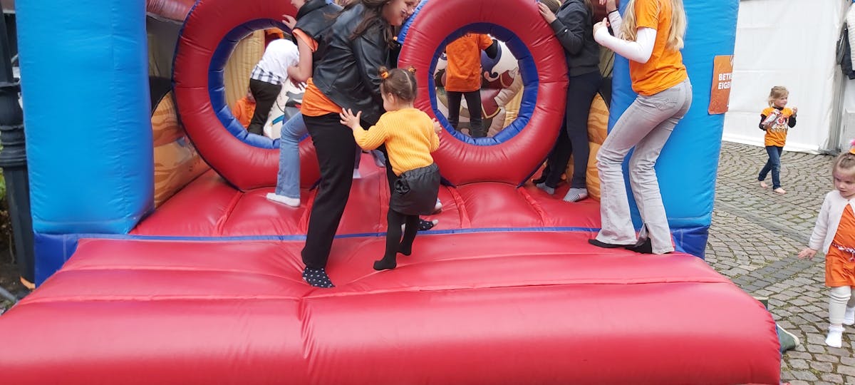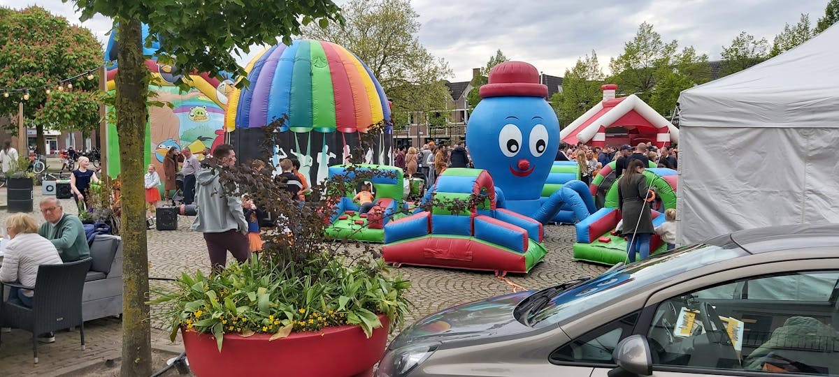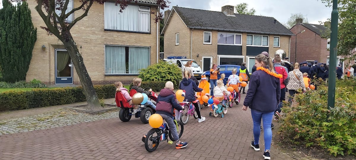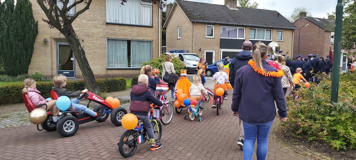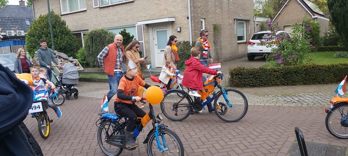 Wat een feestelijke fijne dag. Voor jong en oud en alles ertussen in. Voor de kids een vrijmarkt en heel veel springkussens op het plein. De harmonie voorop en de kinderen met prachtig versierde fietsen er achter. Het plein stond afgeladen vol met oranje uitgedoste mensen.