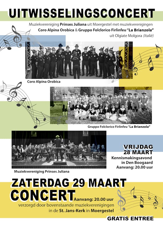 Nog een dikke week en dan ontvangen wij onze Italiaanse vrienden voor een lang weekend. Een kleine 80 muzikanten komen kennismaken met Moergestel en zij zullen natuurlijk ook muziek maken. Het wordt een prachtig weekend met allerlei activiteiten. Met hoogtepunten op de vrijdag en zaterdagavond. Iedereen is welkom. Het wordt een unieke gebeurtenis dus zegt het voort!