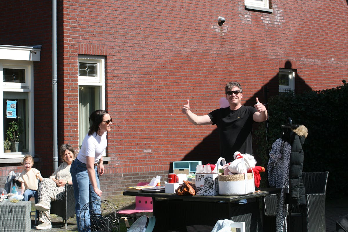 Afgelopen zondag een mooie zonnige dag voor de garagesale in de Prinsessenbuurt, met een stukje Krijtestraat en Rootven. Sommige bewoners, die zich hadden ingeschreven, waar al rond 8.00 uur bezig. De spulletjes op de inrit zetten en de ballonnen opblazen. Deze ballonnen waren voor bezoekers een herkenning van deelname. En de bezoekers kwamen, een gezellige drukte, hier en daar werd bijgepraat, kennis maken met nieuwe bewoners, koffie gedronken met elkaar. Al met al een zeer geslaagde dag. Na een lange natte winter elkaar weer op straat ontmoeten, dat is zo OnsMoergestel. Met dank aan de organisatie.