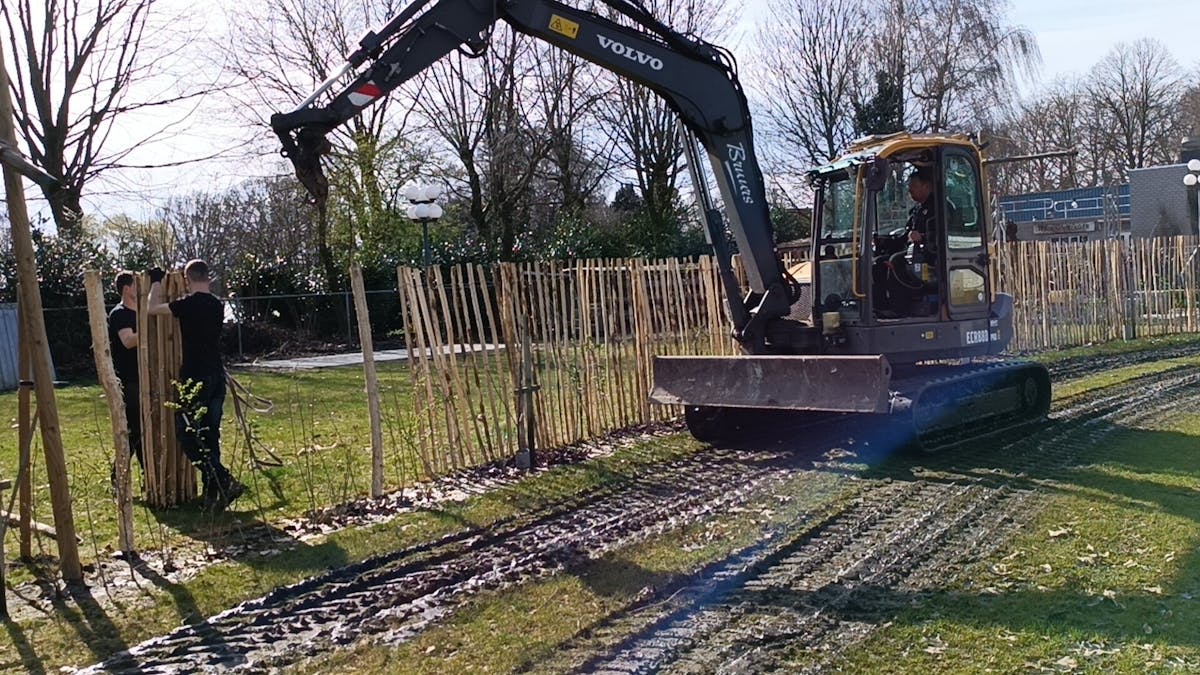 Gelukkig is het weer wat droger geworden en kon de firma Bruurs, in opdracht van de gemeente en op verzoek van Scouting Moergestel, met de grotere werkzaamheden beginnen. We zijn begonnen met het plaatsen van de "nieuwe" toegangspoort aan de achterzijde van ons terrein en vervolgens ging men aan de slag met het schapenhek wat tussen ons parkje en het vergrootte scouting terrein moest komen. Vervelen hebben we ons de afgelopen 2 weken dan ook niet gedaan. Wij van de beheergroep hebben ondersteunende werkzaamheden verricht en hebben de houten, zelfontworpen en gemaakte toegangspoorten, naar het terrein geplaatst. Het pad wat er aangelegd moest worden was meer werk en door de juiste machinisten en machines in te zetten heeft Bruurs deze klus voortvarend ter hand genomen. Op MTV kunnen jullie een gedeelte van de werkzaamheden zien die er gedaan zijn en waar we heel erg trots op zijn.