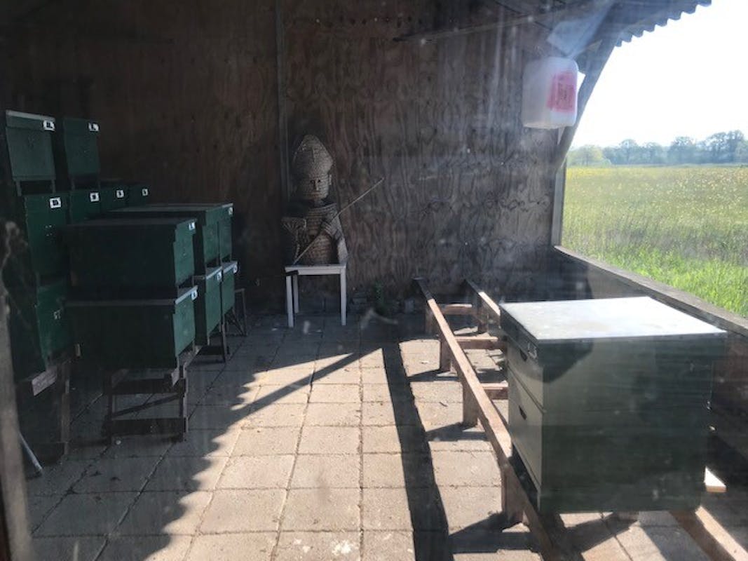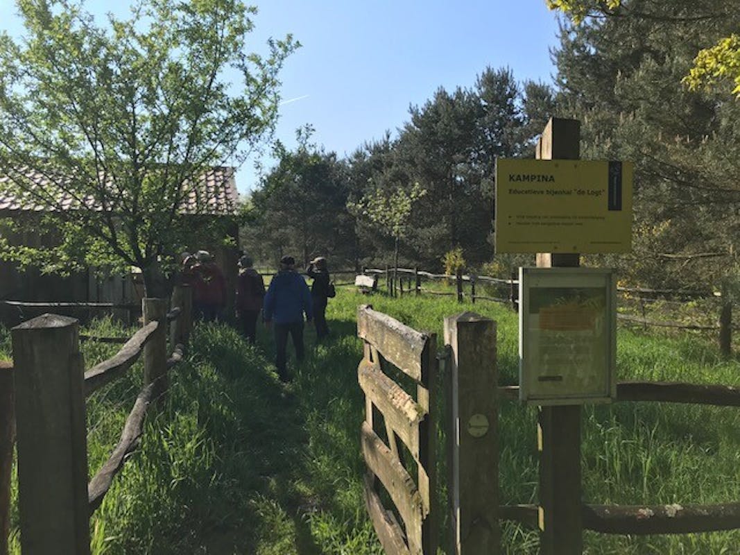 Bij de bijenhal 'de Logt' besloten we onze half-elf-pauze te houden. Er stond zelfs een bankje: gemakkelijk zitten onder het genot van 'het snoepje van Piet' 🍬!